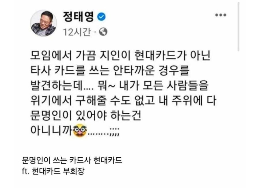 현대카드 정태영 부회장 망언 레전드