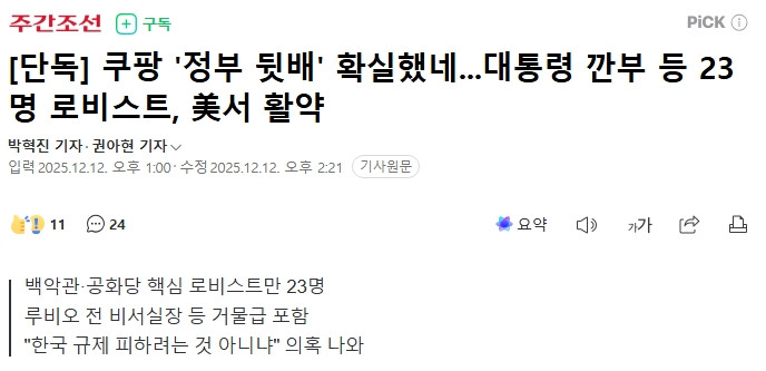 쿠팡 김범석 정부 뒷배 밝혀짐 ㄷㄷㄷ