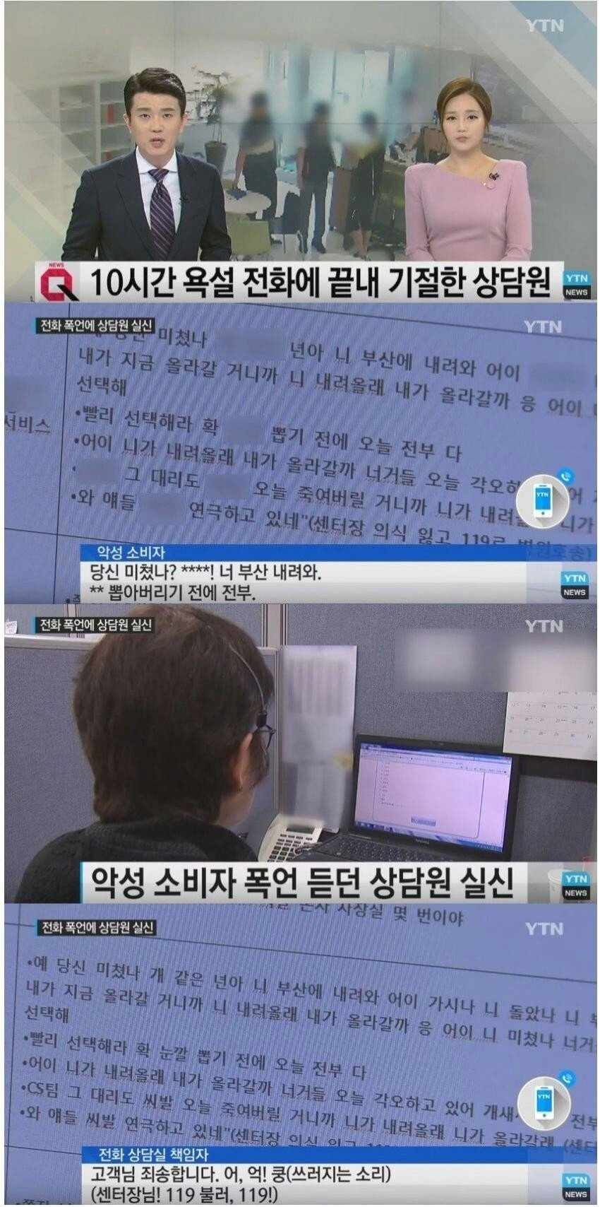 10시간 욕설 전화에 끝내 기절한 상담원 사례