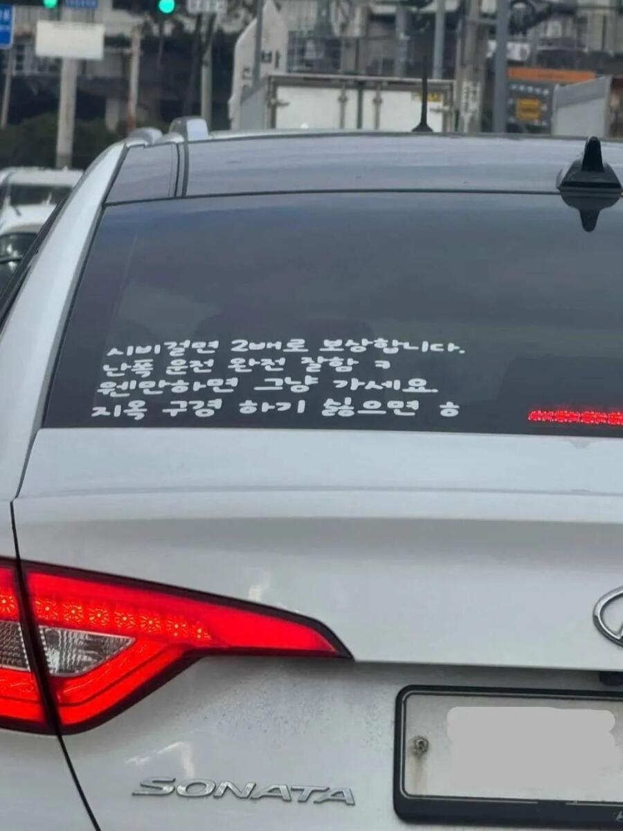 어느 차량 뒷유리 스티커 문구