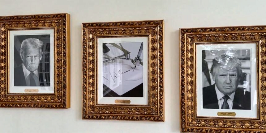 전에 트럼프가 백악관 외벽 서쪽 회랑 부분에 '역대 대통령들의 발자취(Presidential Walk of Fame)'라는 전시물을 설치하면서 바이든 사진만 자동 서명 장치로 대체해놔 논란이 되었는데