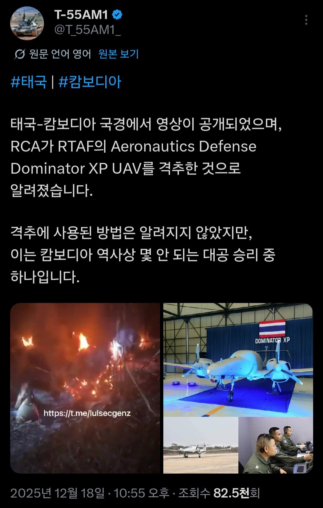 캄보디아군의 역사상 거의 처음으로 공중에 날아다니는 물체를 격추 시킴
