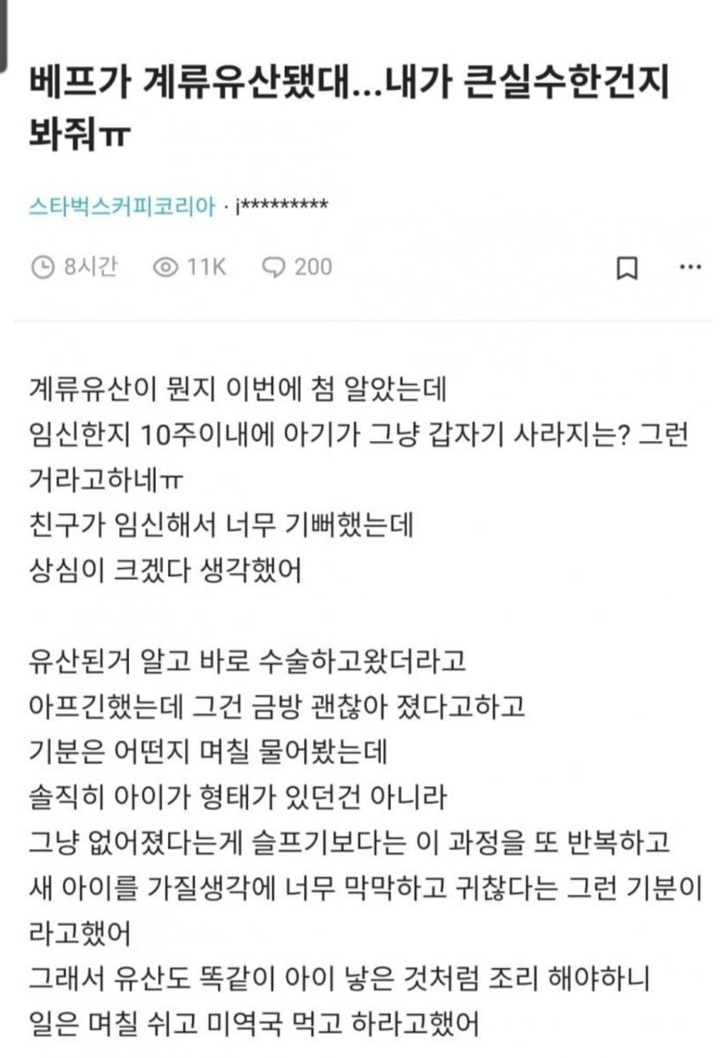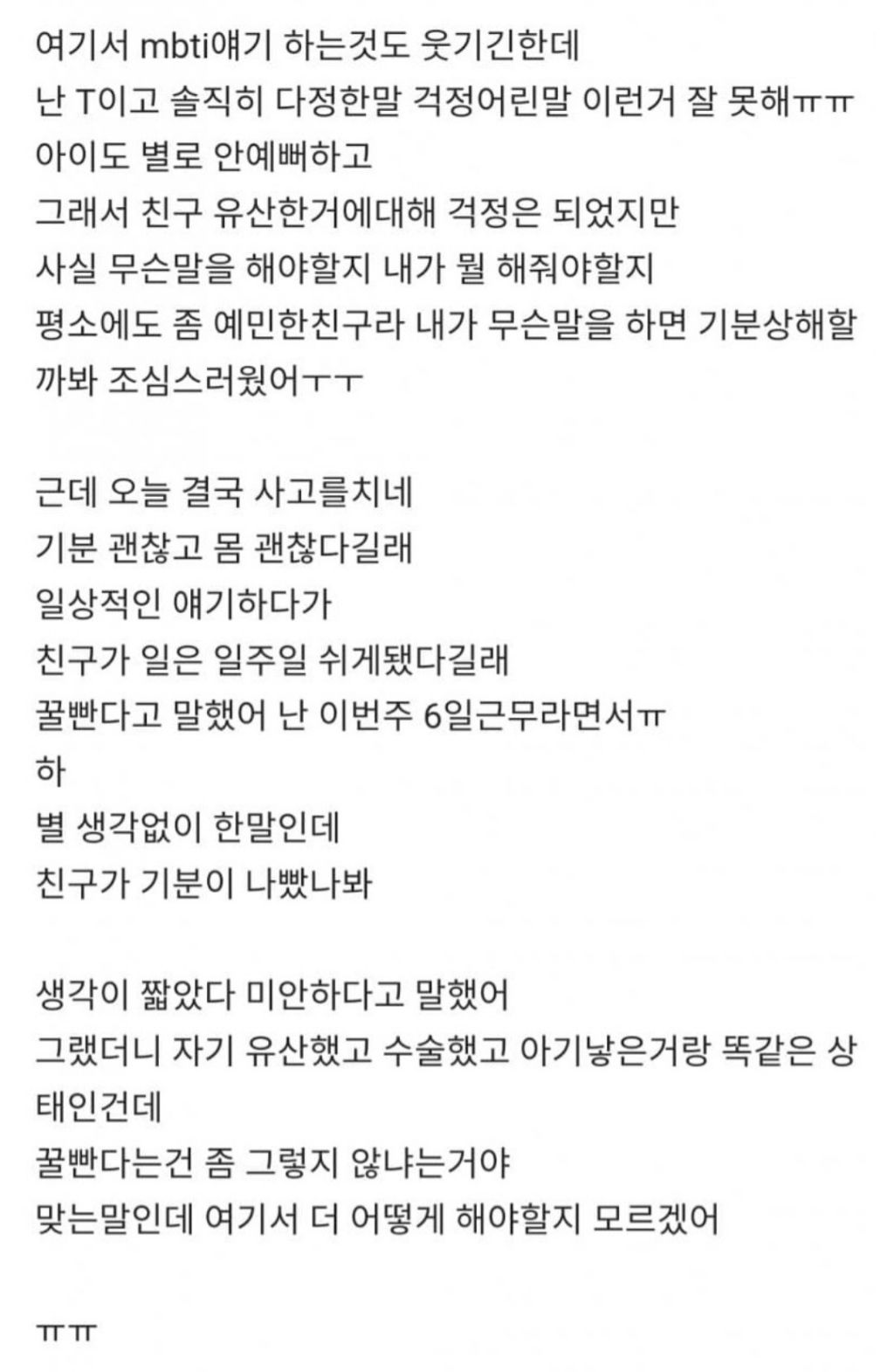 베프가 계류유산됐대 내가 말 실수한건지 봐줘