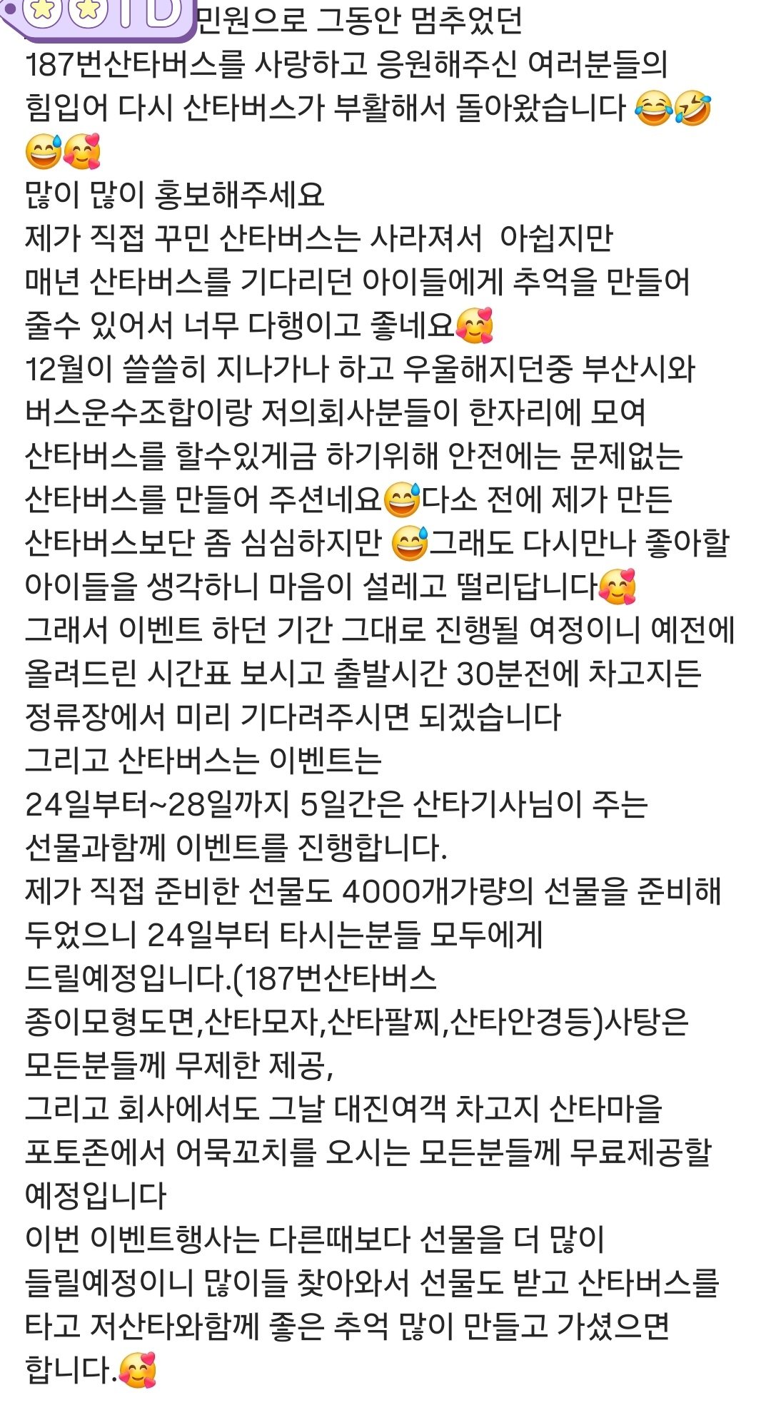 최근 악성 민원으로 사라졌던 부산 산타버스 근황