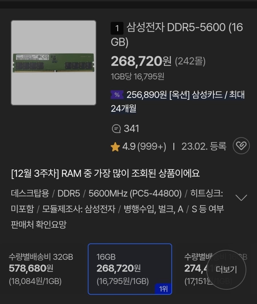 끝 없이 올라가는 컴퓨터 RAM 가격 근황