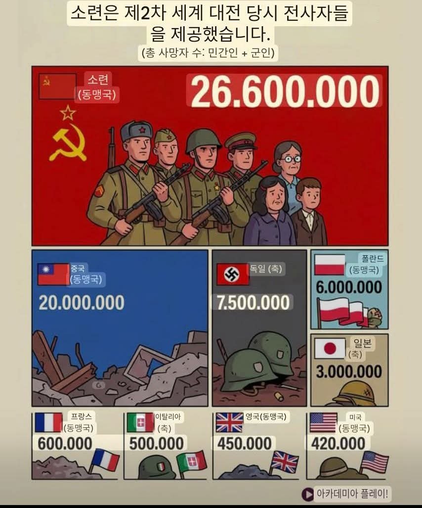 2차 세계대전 주요 참전국들의 사상자 수