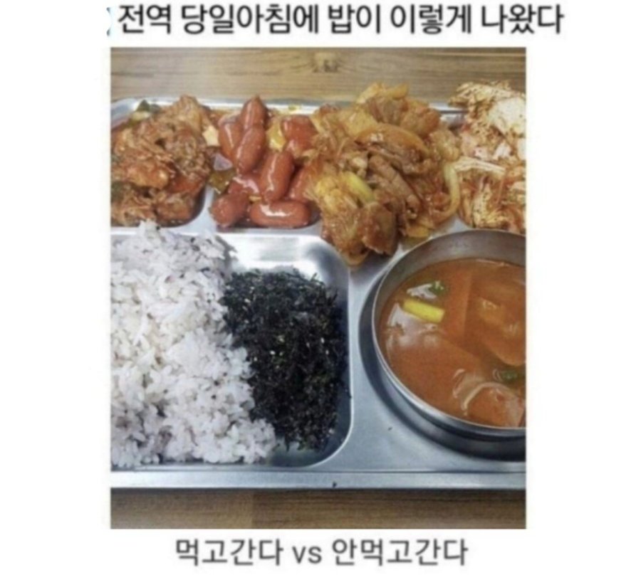 군대 전역 당일 아침 식단이 이렇게 나온다면?