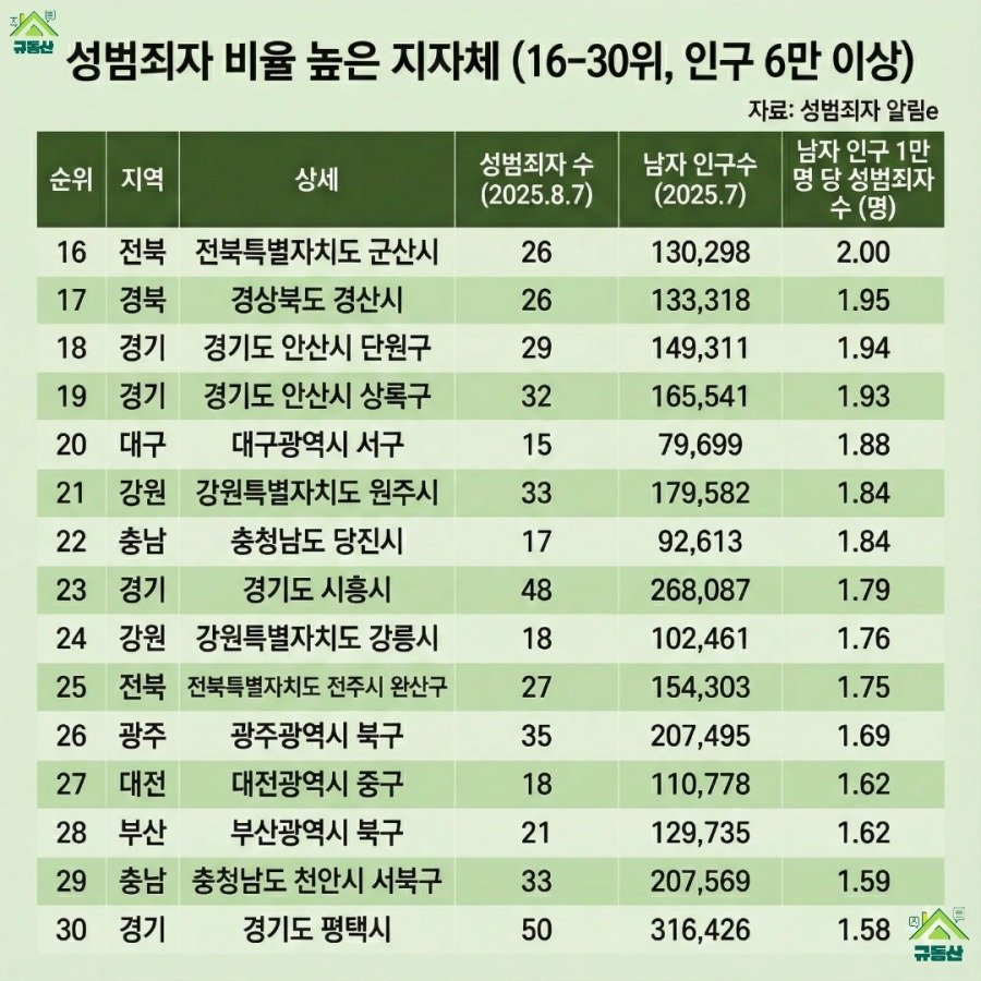 성범죄자 비율 높은 지자체 순위