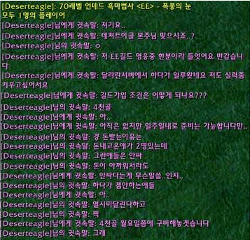 당시 EE길드였던 데좆이글에게 누군가 귓속말을 보내면서 사건은 시작됐다.