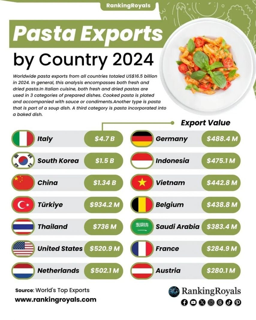 뜬금없이 대한민국 파스타 수출 세계 2위