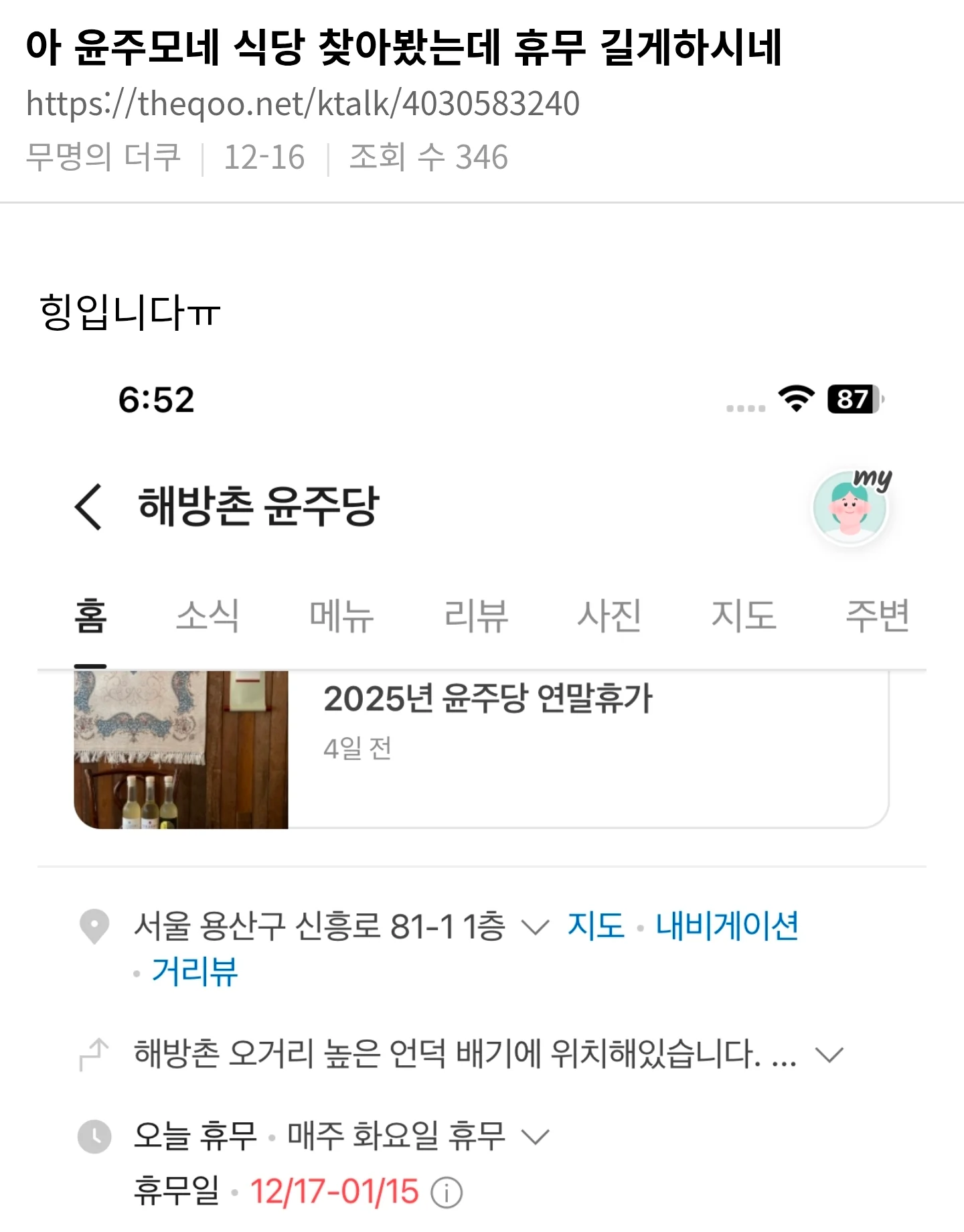 12월 16일 흑백요리사 공개 다음날부터 연말휴가로 휴무 들어가서 1월 13일 막화 나올때까지 가게를 닫아놨음