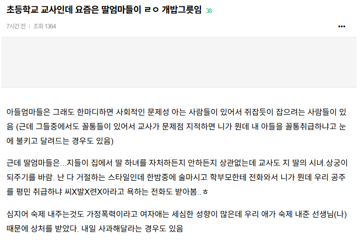 학부모에게 씨발년아 소리들었다는 초등학교 교사