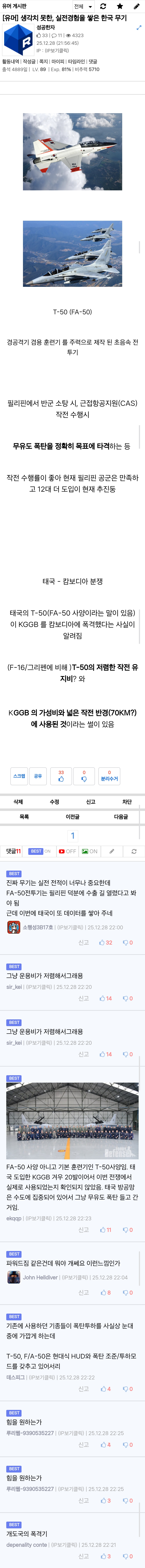 생각치 못한, 실전경험을 쌓은 한국 무기