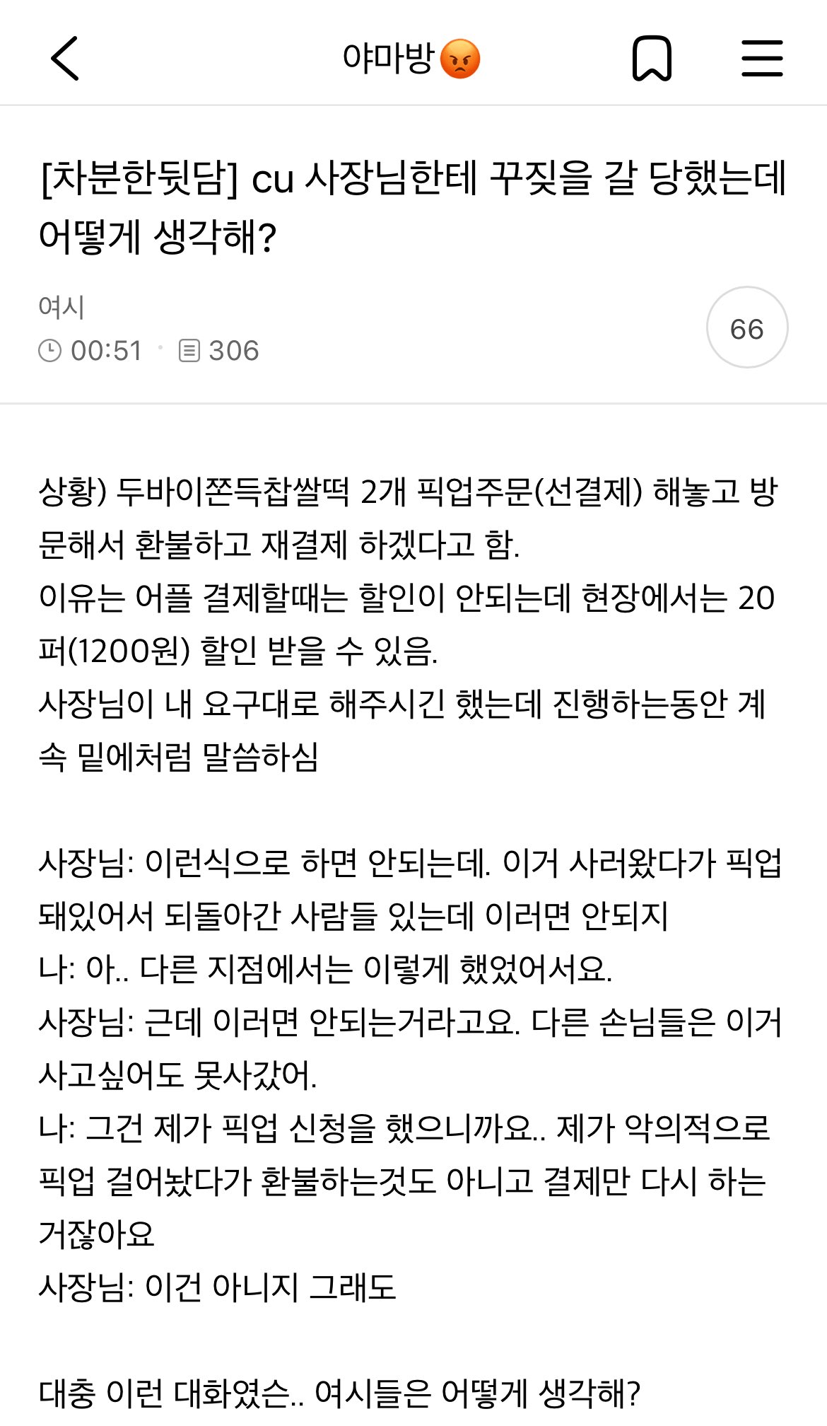 CU 사장님한테 혼난 여시 ㄷㄷ