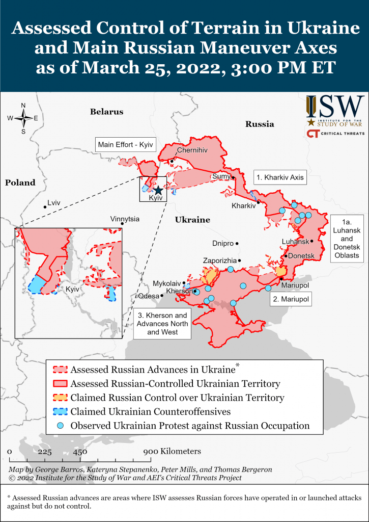 이 시점까지 우크라이나는 전체 영토의 1/4을 점령당해있었으나 키이우 사수에 성공하면서 러시아군의 전략 목표 달성을 저지했습니다.