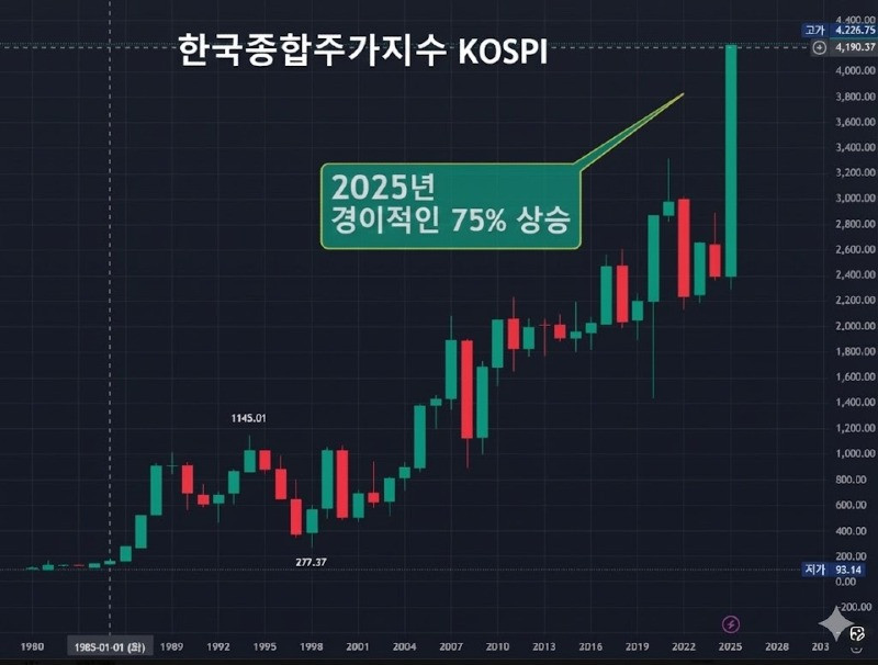 올해 코스피 상승률 75% ㄷㄷㄷ