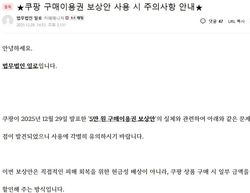 법무법인 일로, 쿠팡 구매이용권 사용 주의 안내