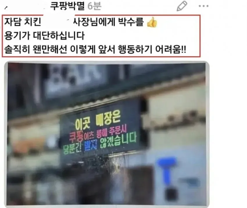 쿠팡이츠로는 주문 안받겠다는 자담치킨 점주 ㄷㄷ