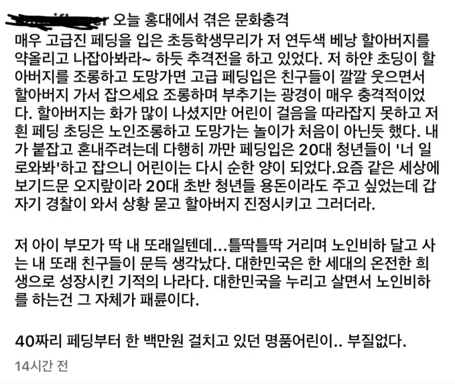 어제자 홍대에서 노인 조롱하는 초등학생 무리