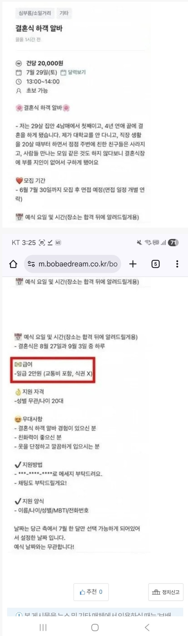 당근에 올라온 일당 2만원짜리 하객 알바 조건
