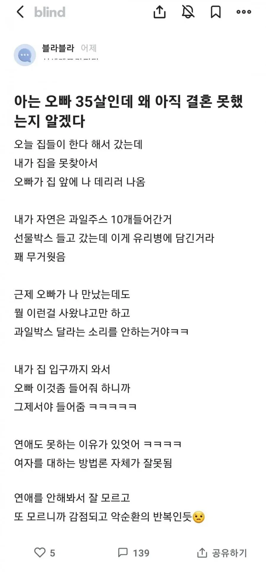 아는 오빠 35살인데 왜 아직 결혼 못했는지 알겠다