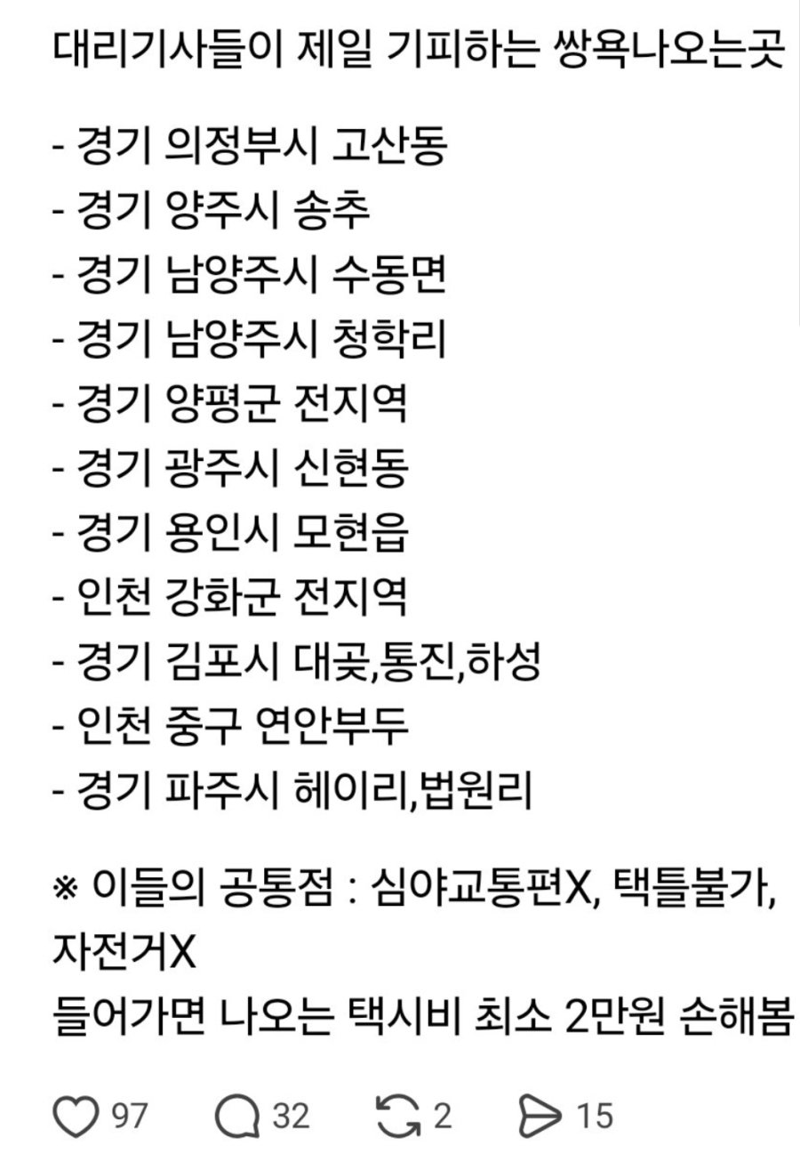 대리기사들이 제일 기피하고 쌍욕 나오는 동네