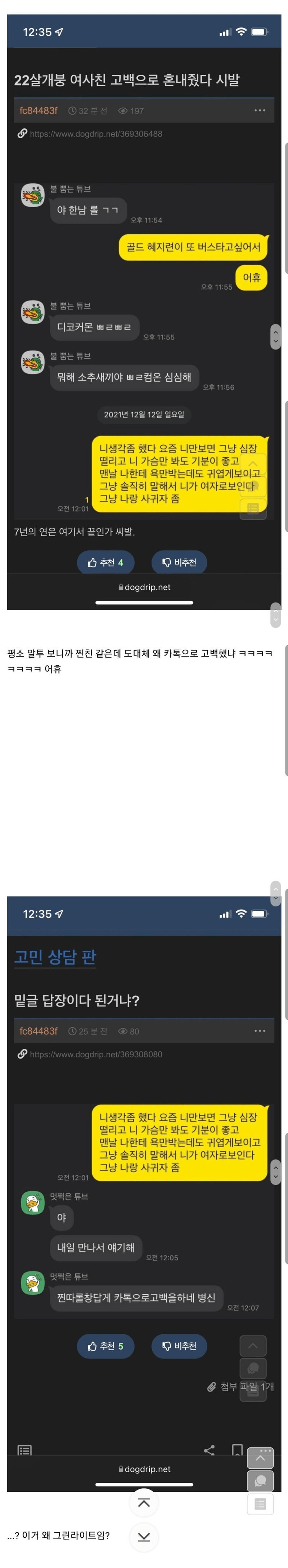 22살인데 여사친 고백으로 혼내줬다