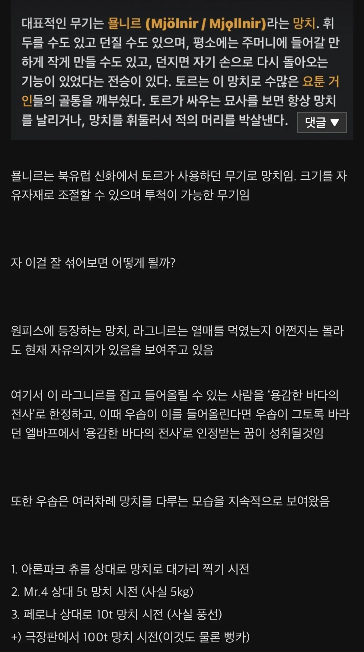 ??? : 우솝은 엘바프에서 각성한다 묠니르를 얻는다