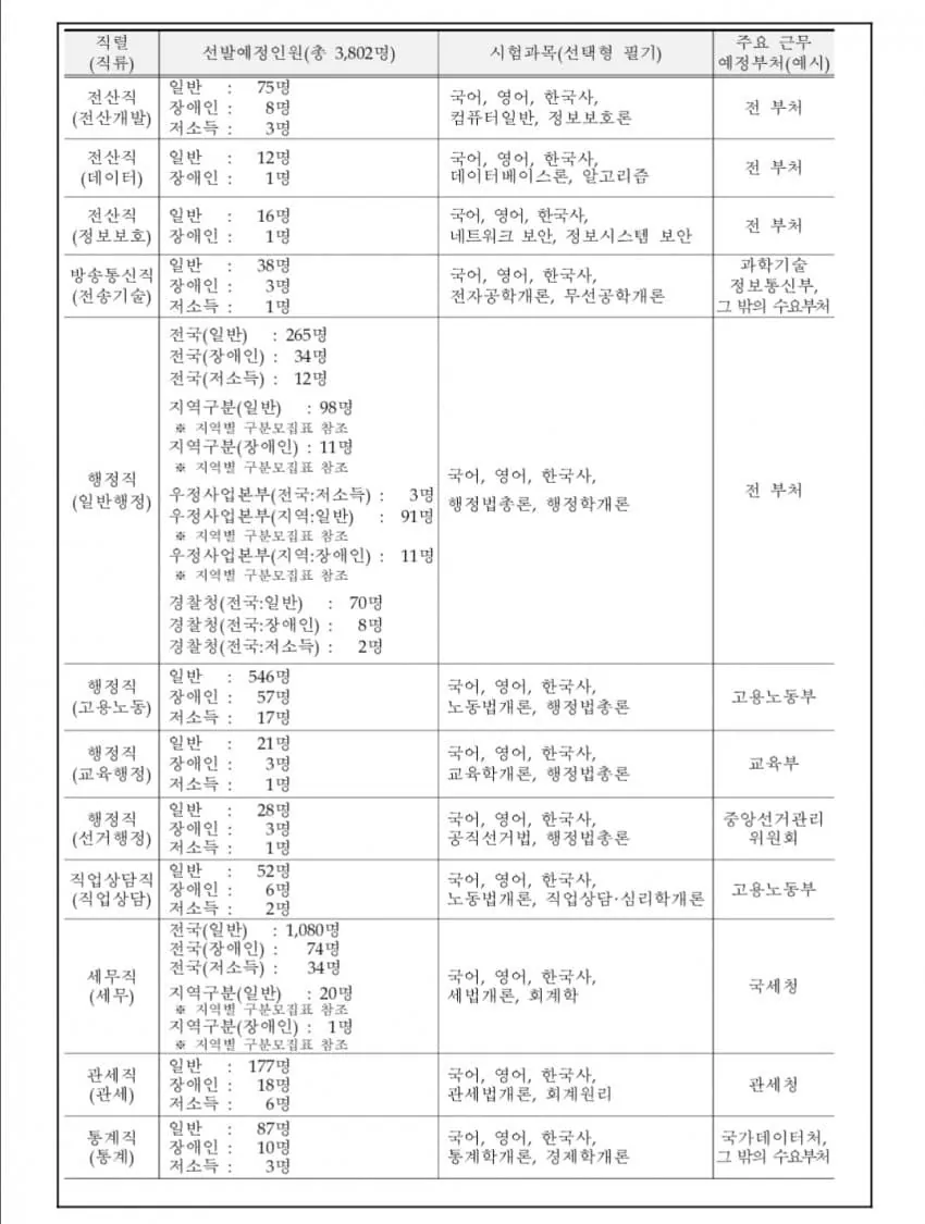 요즘 9급 국가직 공무원 티오 ㄷㄷㄷ