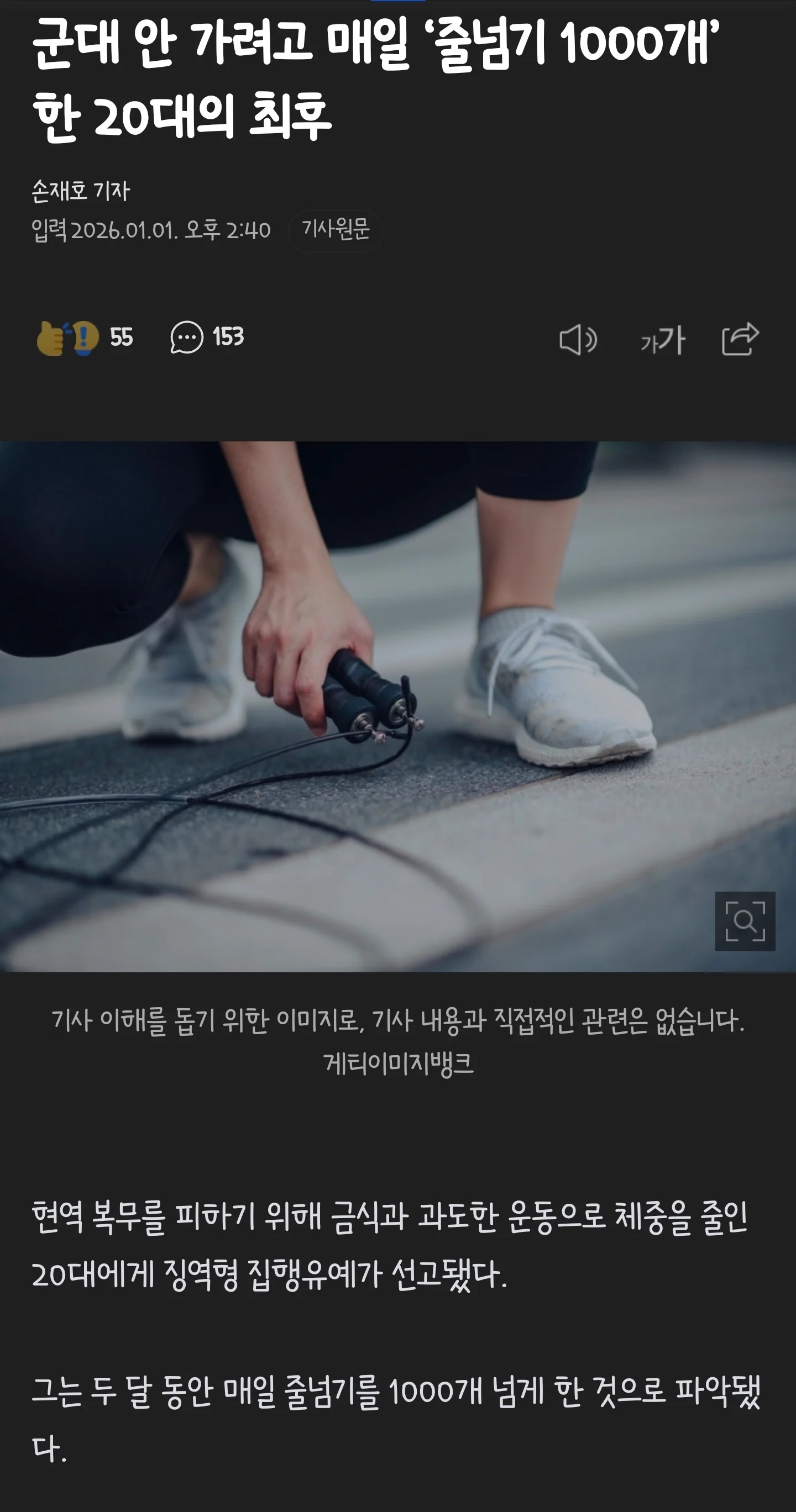 군대 안가려고 매일 줄넘기 천개한 20대의 최후