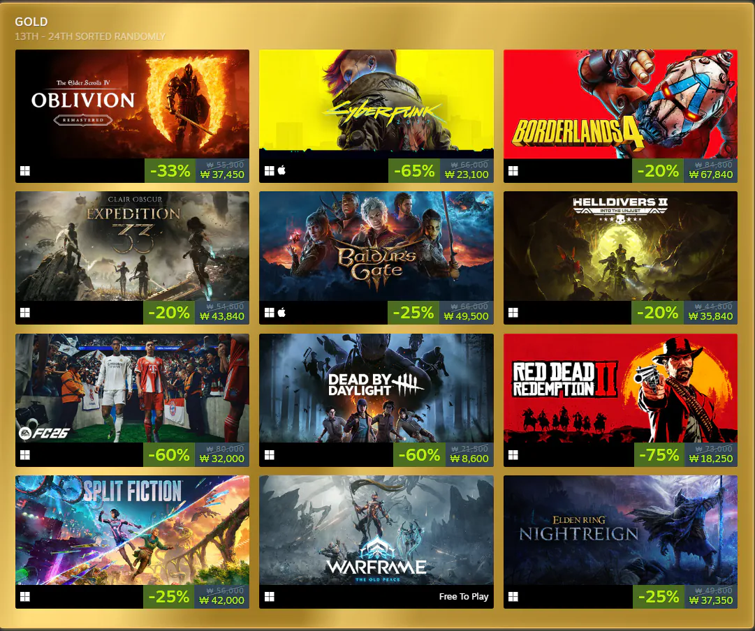 사이버펑크2077, 레드 데드 리뎀션2, 발더스게이트3는 나온지 좀 되었는데도 당당하게 골드에 안착