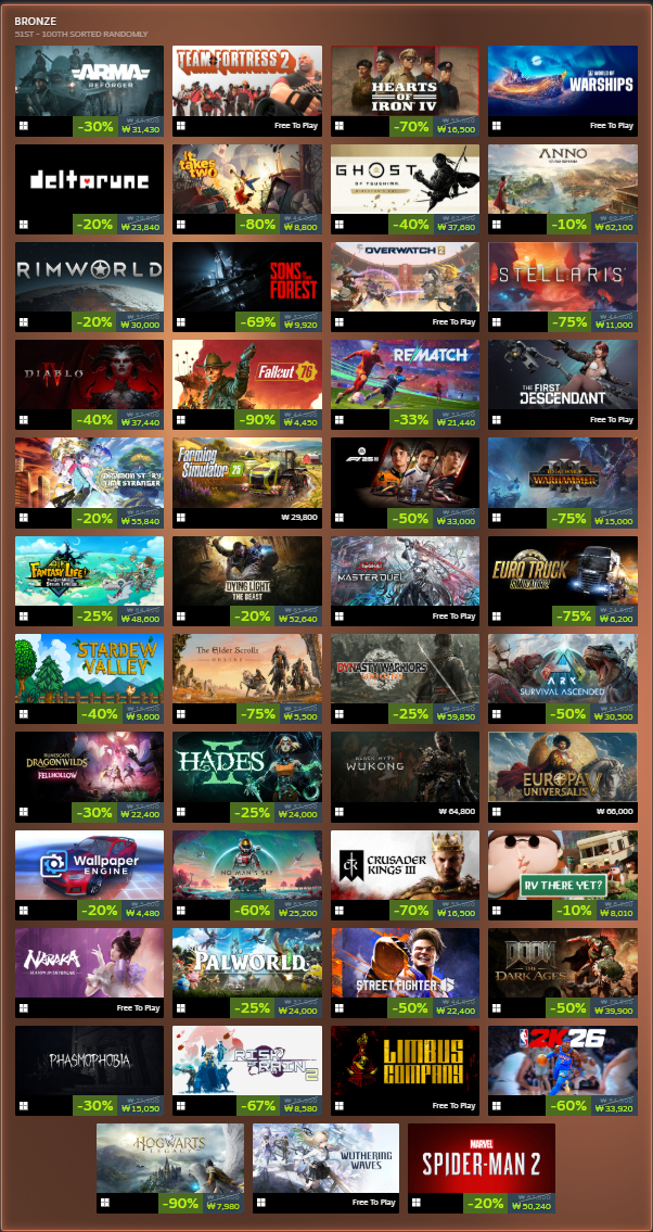 할인을 거의 안해서 그런지 검은 신화 오공은 2024년에 플레티넘에 인거에 비해 2025년에는 브론즈로 추락