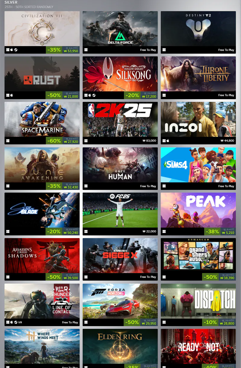 문명7은 신규출시 기준으로는 플레티넘이였지만 모든게임 수익으로는 실버로 떨어짐