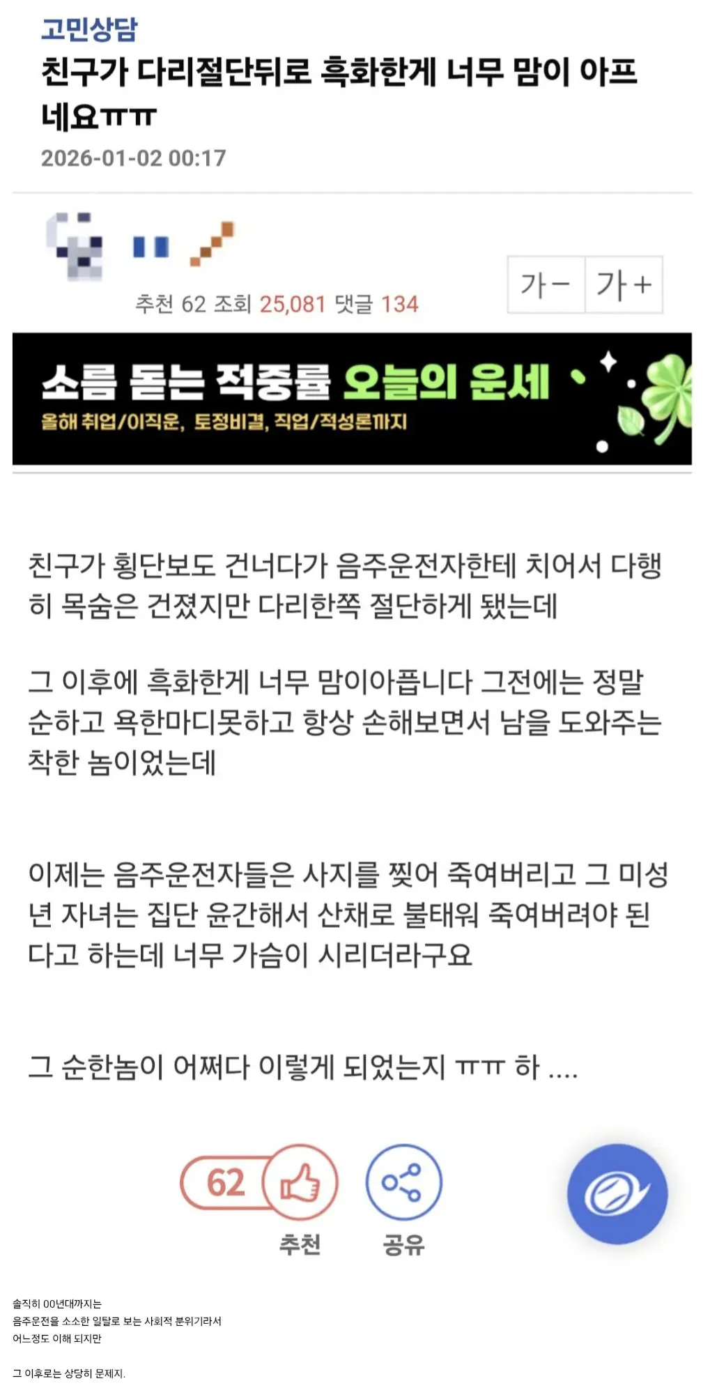 다리 절단한 이후로 흑화한 친구 썰