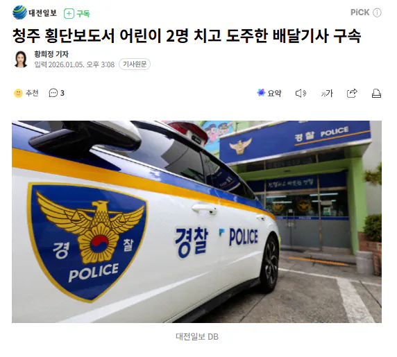어린이 2명 치고 도주한 딸배