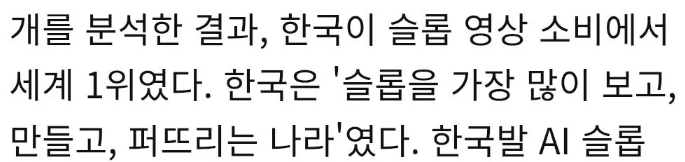 양산형 유튜브 AI 짜집기,저질영상을 제작 소비하는 나라중에 1위가 대한민국임 (조회수 약 84억 5천만회)