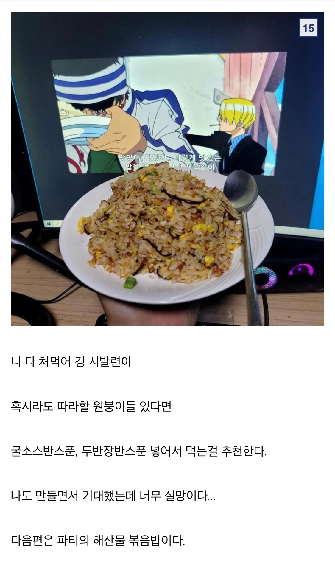 원피스) 상디가 깅에게 해준 볶음밥을 직접 해먹어 봄