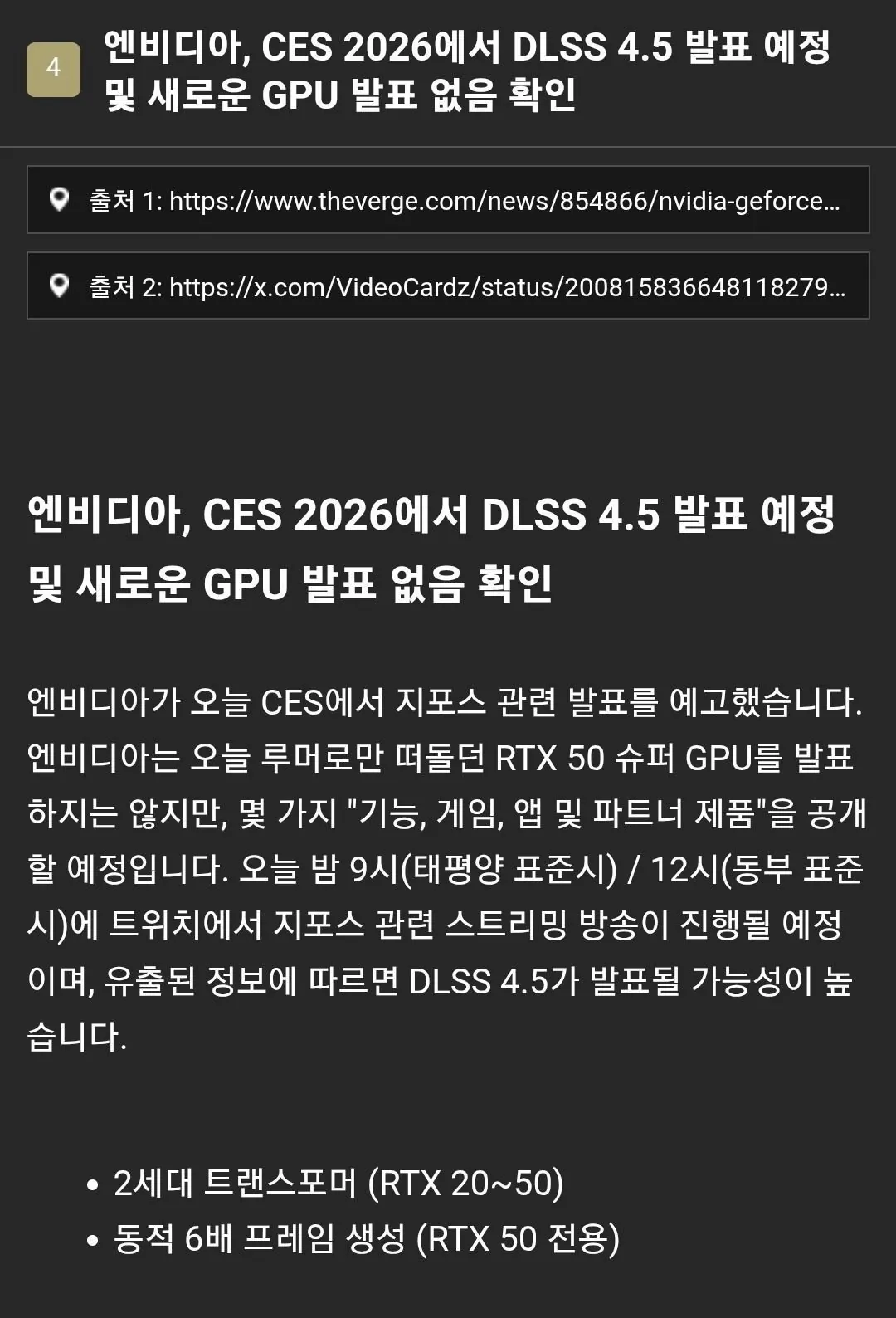 Ces2026에서 신규 gpu 없음을 고지했습니다