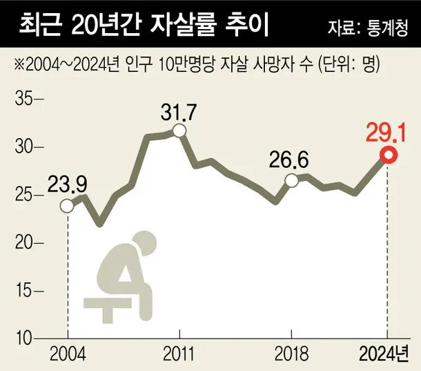 나아지지 않는 한국의 자살률 추이
