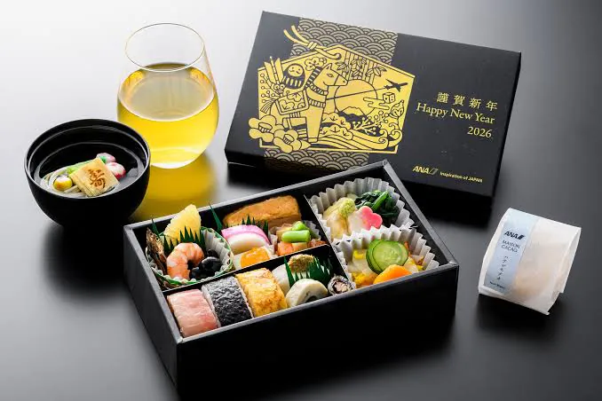 기내에서 신정에 먹는 오세치요리도 제공