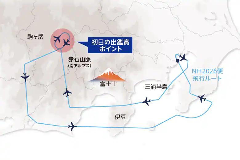 후지산 상공을 선회하며 새해 첫 일출 기내방송 하는 기장