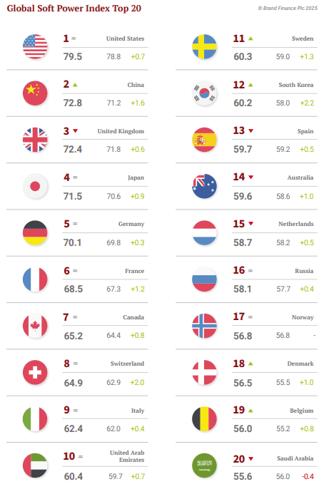 소프트파워: 대중문화,명성,영향력 등을 나타내는 지표