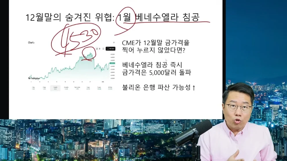 게다가 미국이 베네수엘라를 공격까지 했으니 CME가 금 가격을 누르지 않았다면 금 가격은 떡상해서 불리온 뱅크들 일부는 진짜 파산할 수 있는 가능성이 있었다