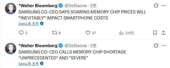 1. 메모리 가격이 스마트폰 가격에 "필연적으로" 영향을 줄 것
