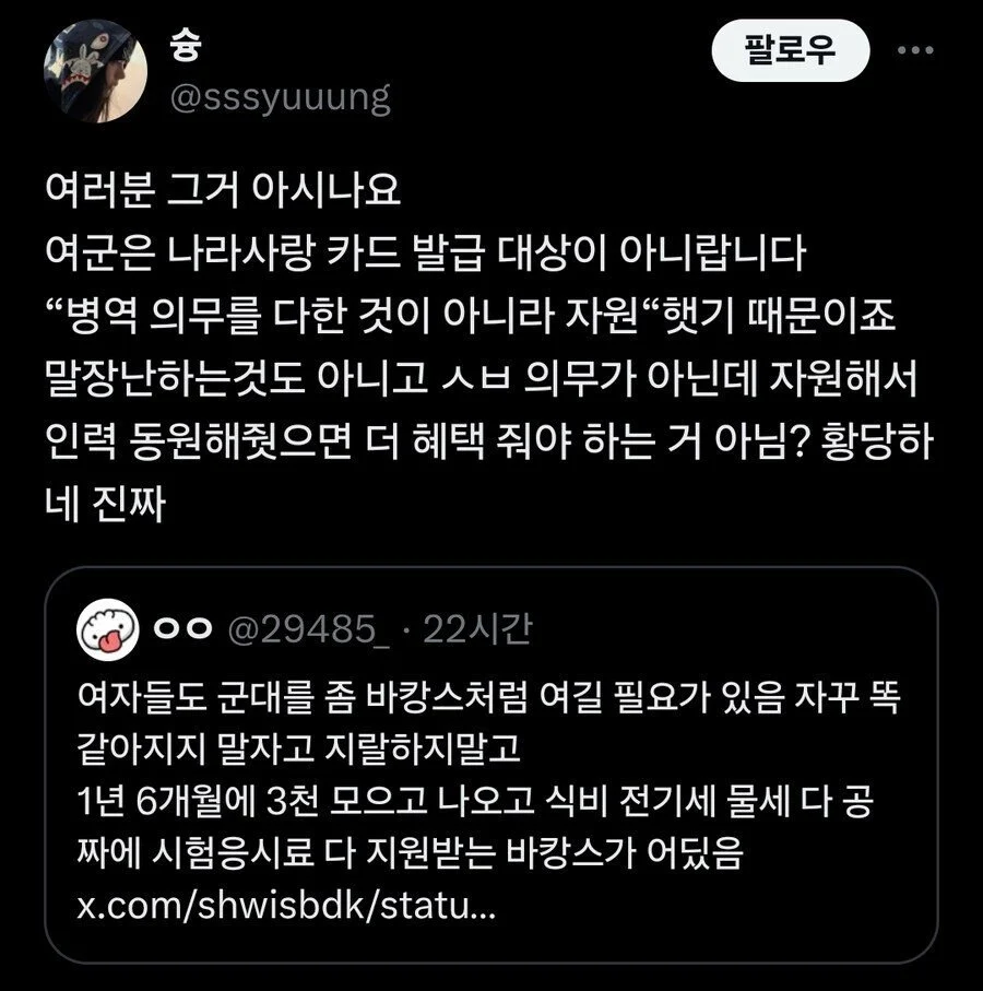 여군은 나라사랑카드도 안줌