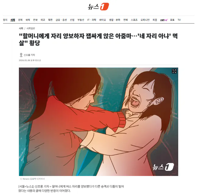 할머니에게 자리 양보하자 잽싸게 앉은 아줌마