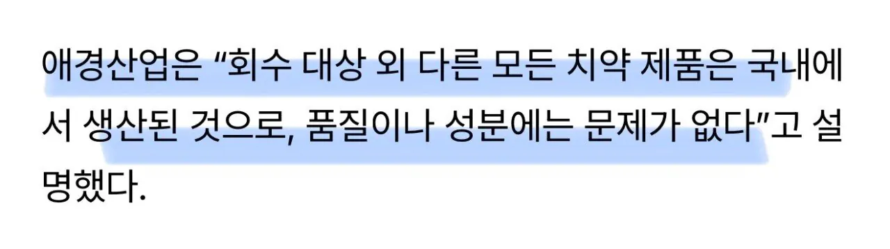 회수 리스트인 6개 외엔 전부 국내 생산이라 함