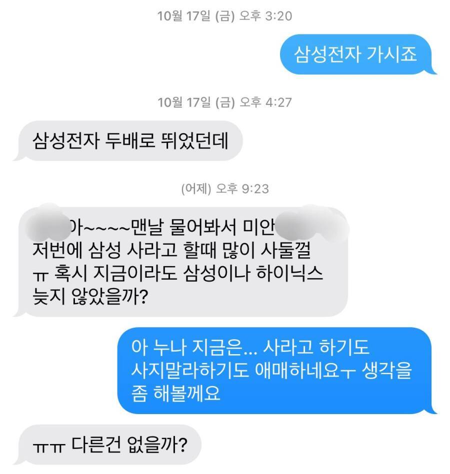 흔한 "주식 관련 문자 대화" ㅋㅋ