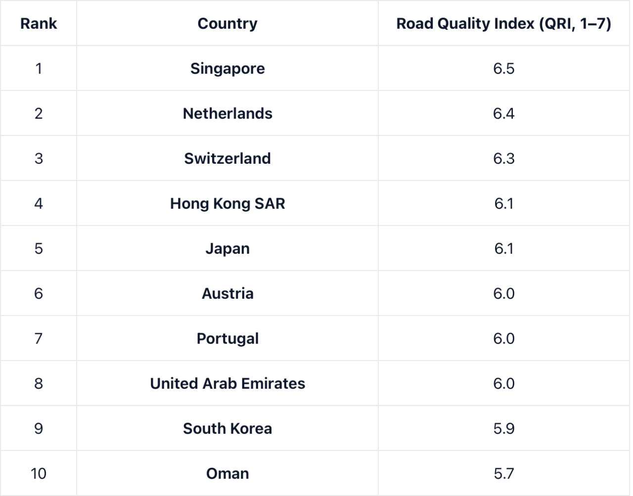 한국의 도로 품질은 세계 9위 수준