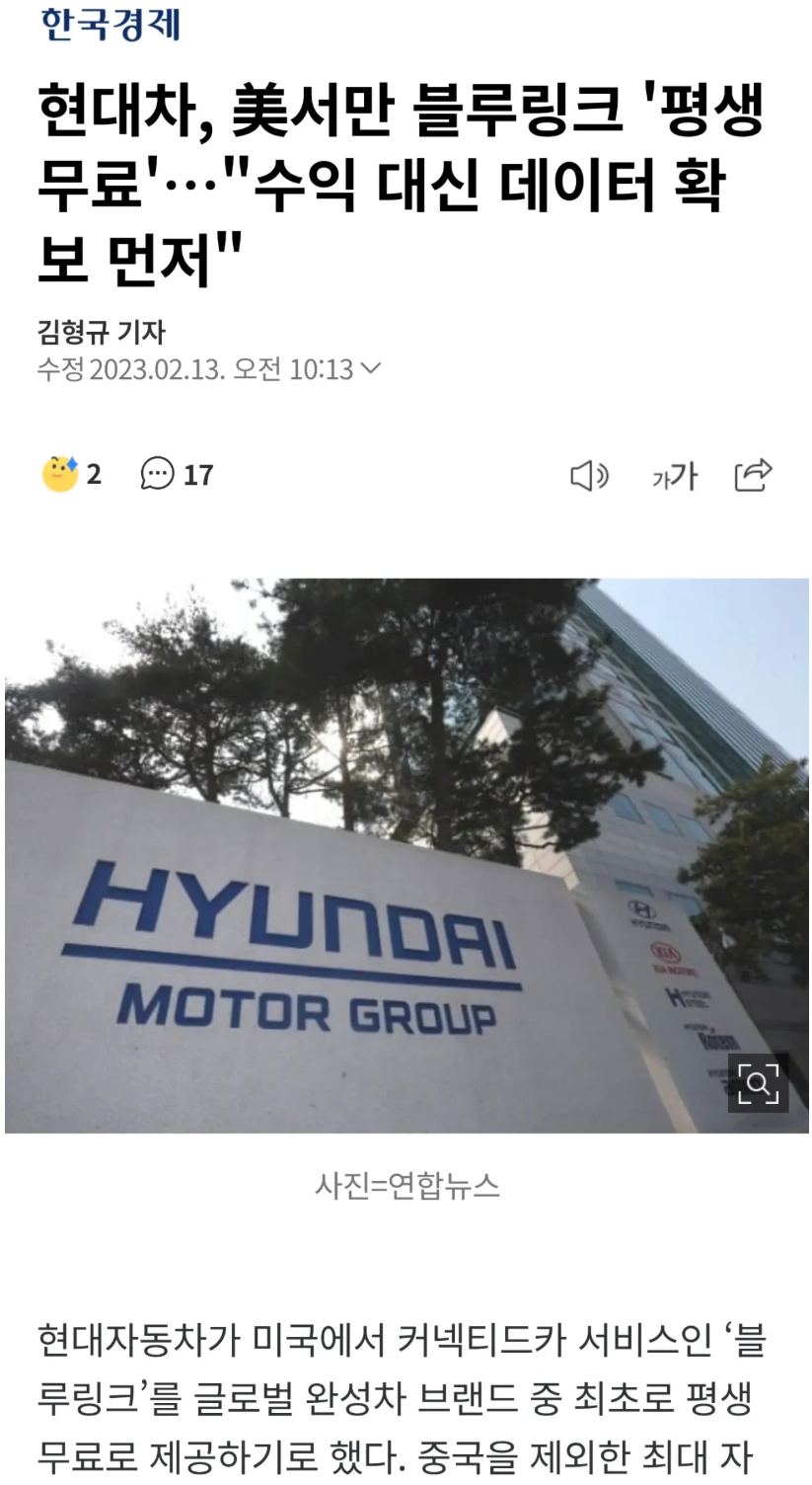 현대차, 블루링크 "평생 무료" 선언